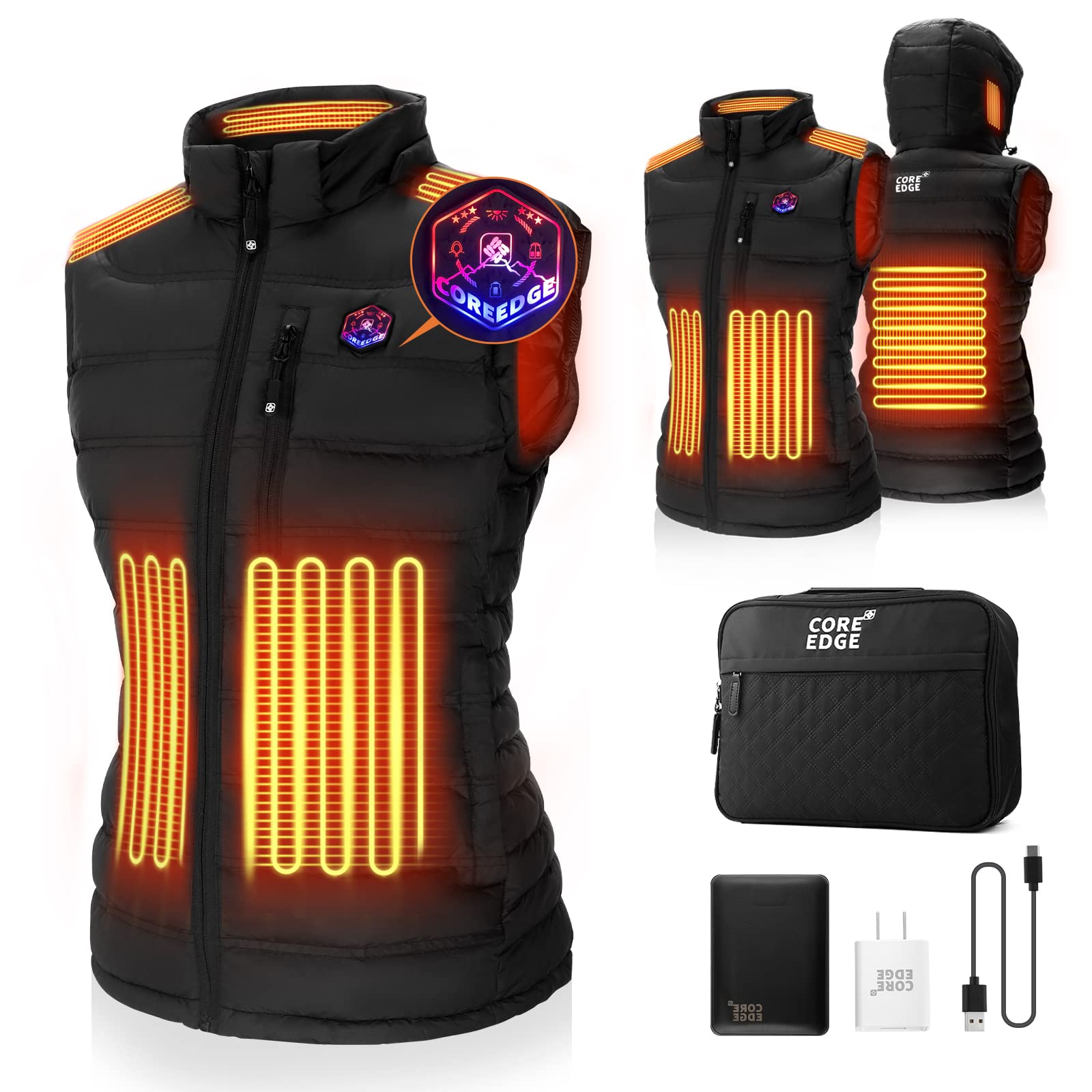 The COREEDGE Heated Vest for Women is designed to provide consistent warmth in cold weather conditions. Featuring advanced carbon fiber heating elements, a smart 5-in-1 control switch, and a detachable heated hood, this vest offers customizable comfort for various outdoor activities or daily wear. This manual provides essential information for the safe and effective use of your heated vest.