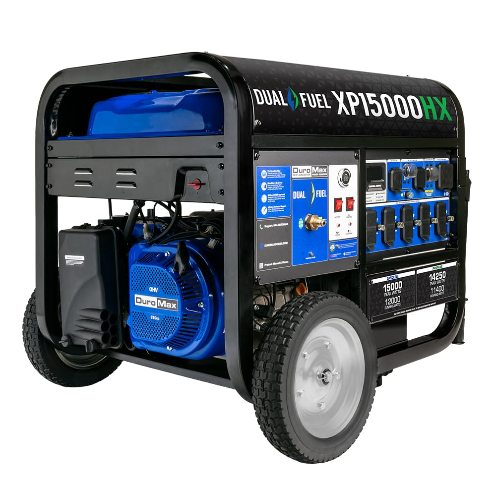 The DuroMax XP15000HX is a dual fuel generator, capable of running on either gasoline or propane.