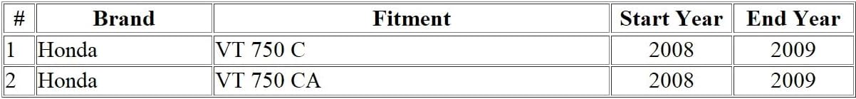 Please verify your motorcycle's make, model, and year against this list to ensure proper fitment. Refer to the fitment table image below for visual confirmation.