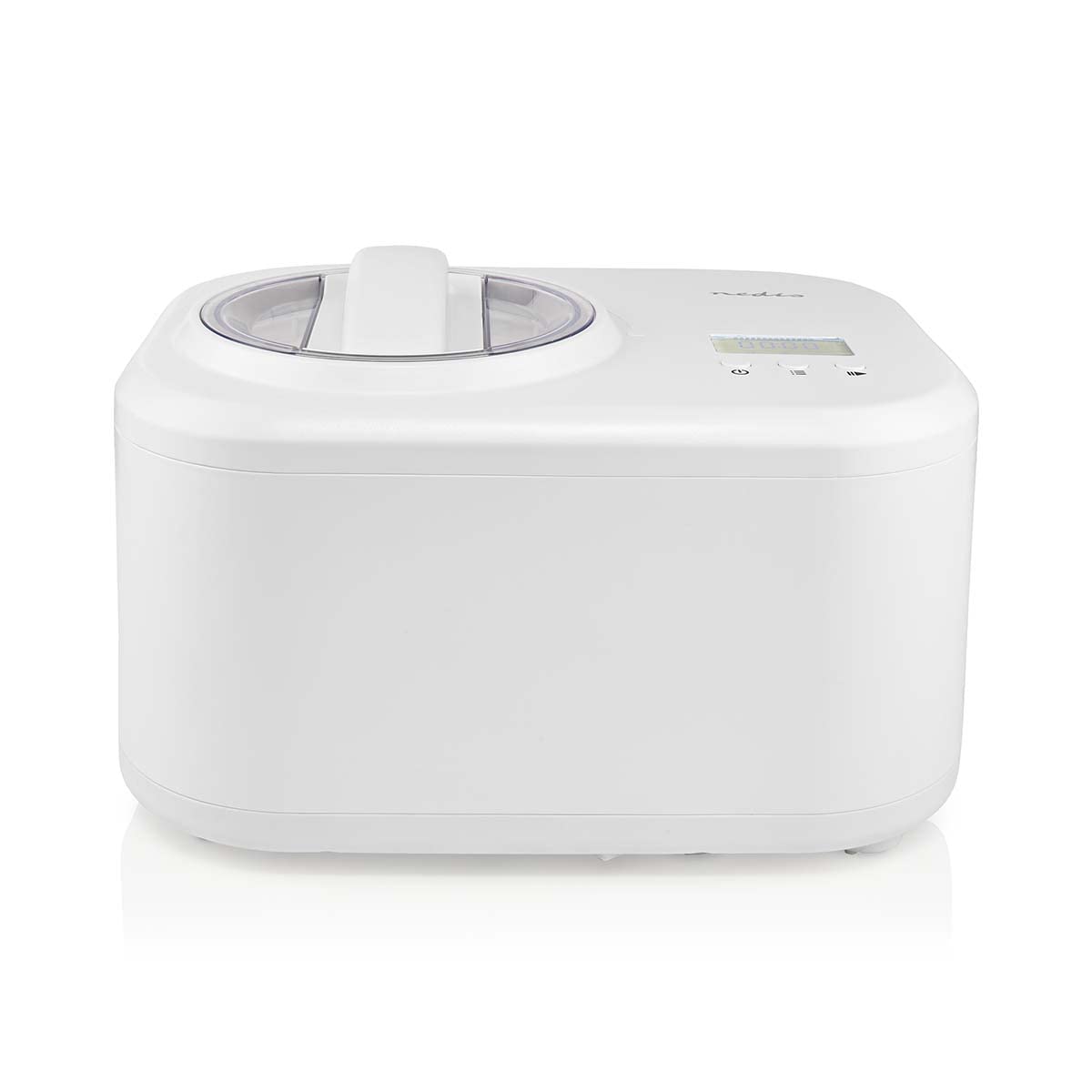 Image: Nedis KAIM600CWT Ice Cream Maker, showing the main unit with control panel and lid.