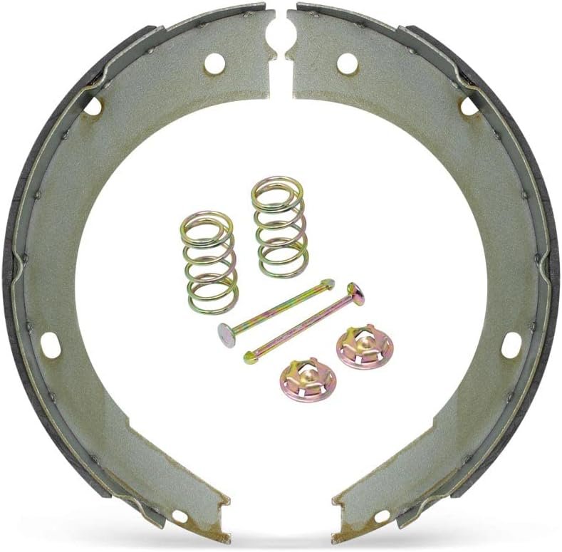 - Kit Contents: Lined primary brake shoe, lined secondary brake shoe, 2 hold-down pins, 2 hold-down springs. (Components for one wheel)