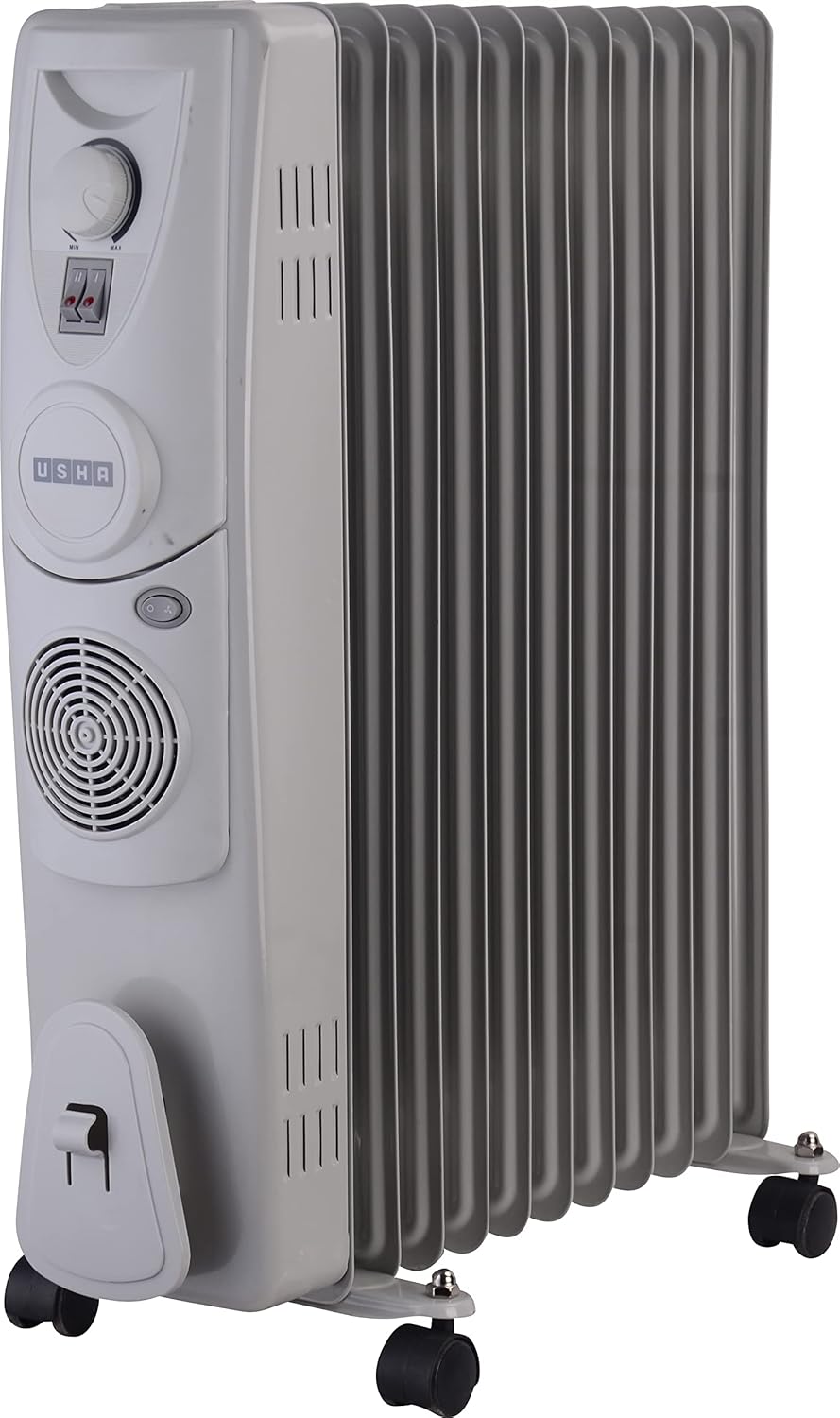 The Usha OFR 11 Fin 2900 Watt 4211F PTC Room Heater is an oil-filled radiator designed for efficient indoor heating. It includes a fan heater for faster heat distribution.