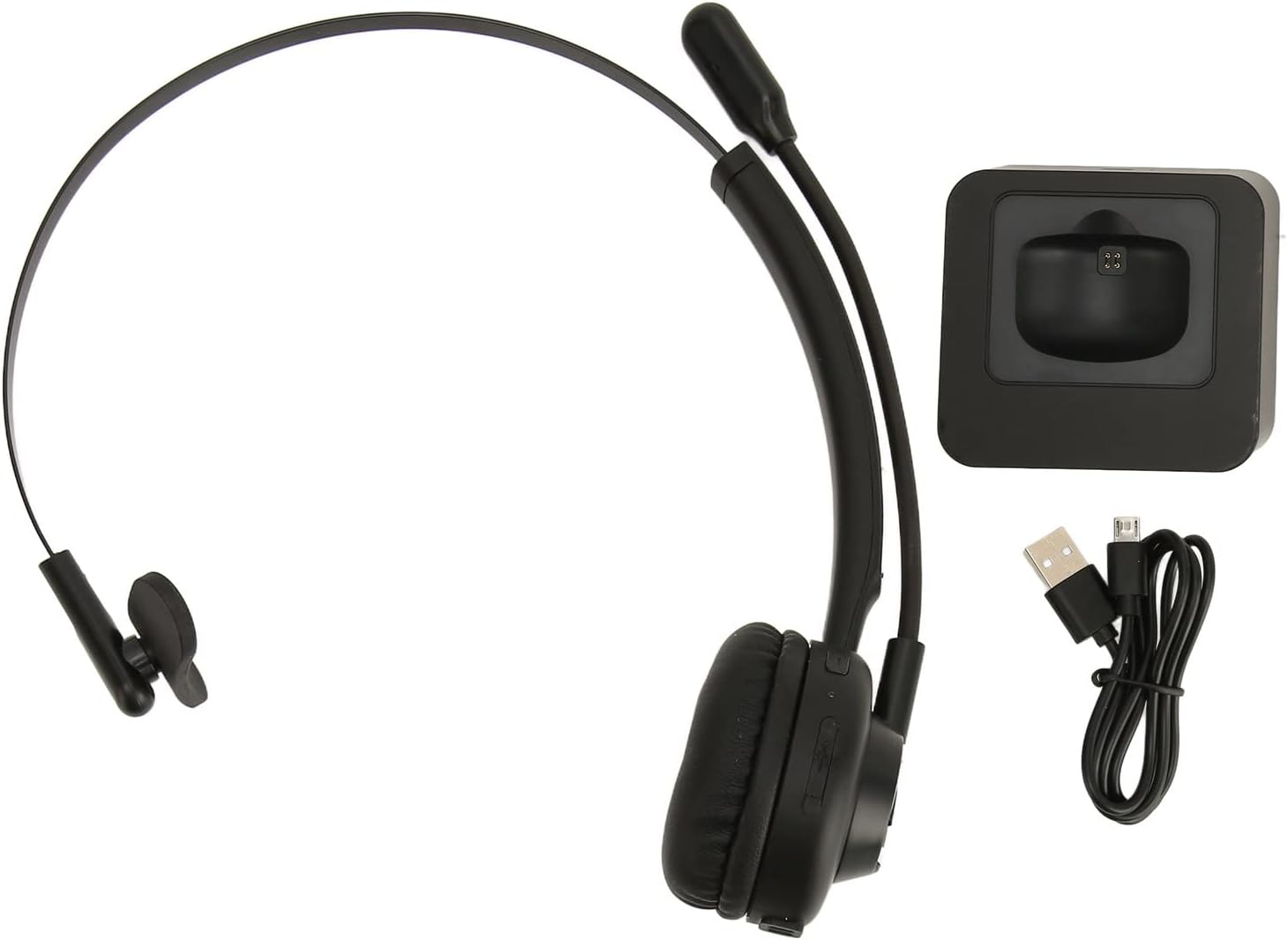 Image: The headset illustrating its rotatable microphone, comfortable design, and Bluetooth 5.0 capabilities for stable transmission.