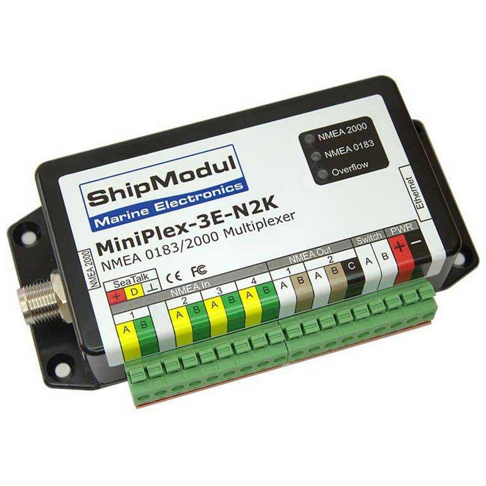 The SHIPMODUL MiniPlex-3E-N2K is an advanced NMEA 0183/2000 Multiplexer designed for marine electronic systems. It facilitates the integration and communication between various navigation and communication devices by converting and routing data between NMEA 0183 and NMEA 2000 networks. This device is essential for creating a cohesive and efficient marine electronics setup, ensuring seamless data exchange for optimal performance.