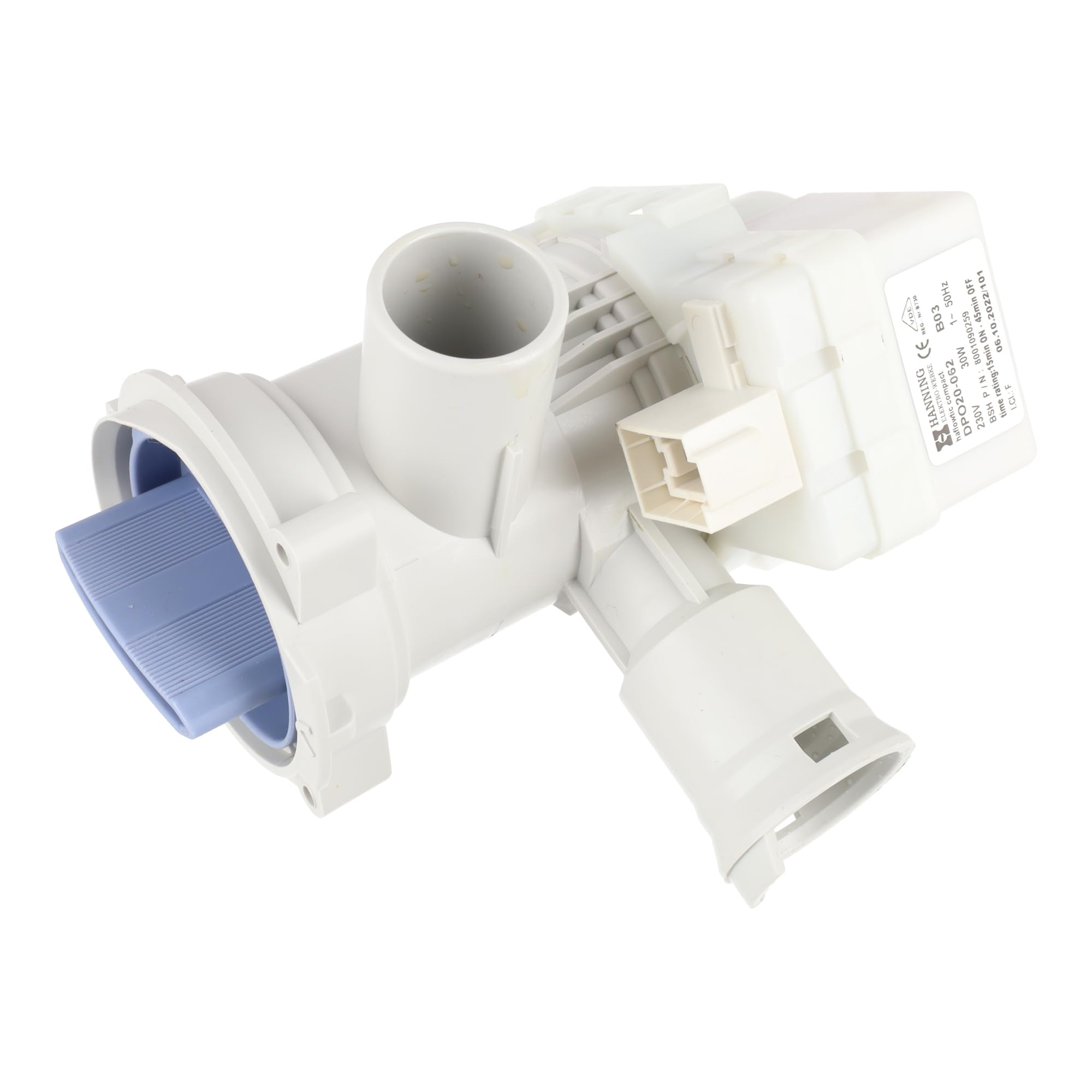 This sparefixd drain pump and filter body is an equivalent replacement for Bosch part number 00146083.