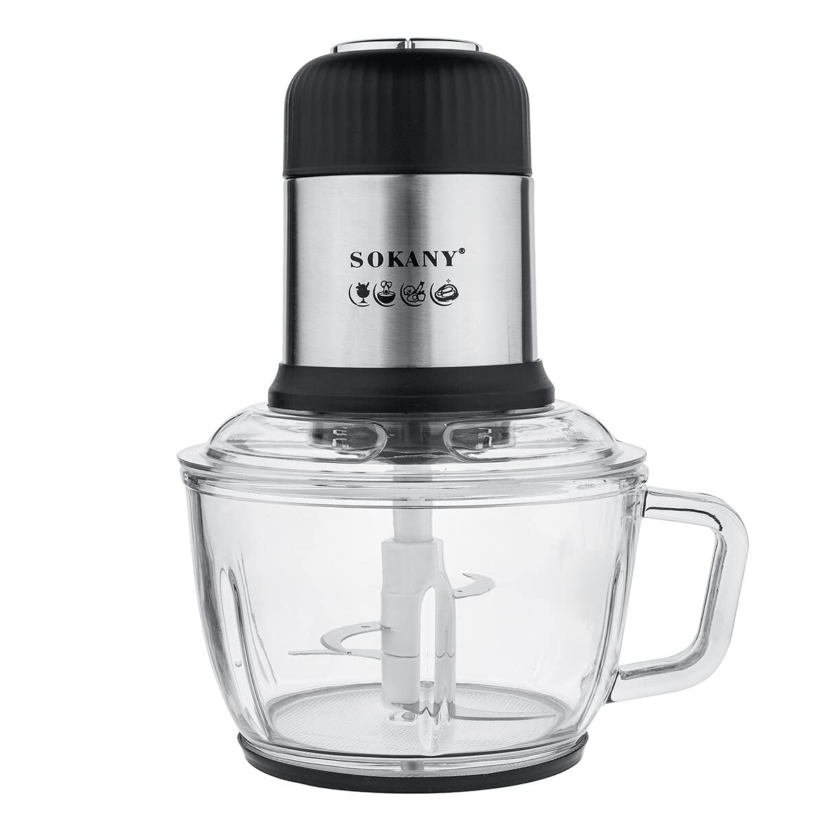 Thank you for purchasing the Sokany SK-7025 Multi-functional Food Chopper. This appliance is designed to simplify your food preparation tasks, offering efficient chopping and grinding for various ingredients. Featuring an 800W motor, a durable 2-liter glass bowl, and four stainless steel blades with a 4D design, it ensures thorough and consistent results. Please read this manual carefully before first use to ensure safe and optimal operation.