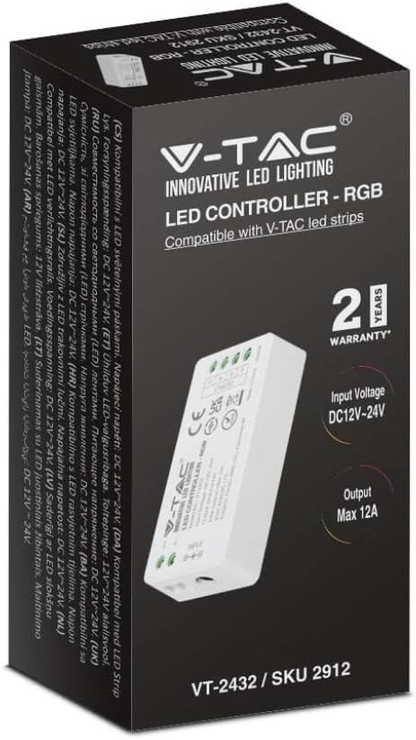 This V-TAC VT-2432 RGB WIFI Controller comes with a 5-year warranty from the date of purchase. This warranty covers manufacturing defects under normal use. It does not cover damage caused by improper installation, misuse, accidents, or unauthorized modifications. Please retain your proof of purchase for warranty claims.