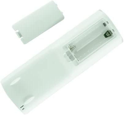 Image: Rear view of the remote control with the battery cover open, illustrating the correct orientation for AAA battery insertion.