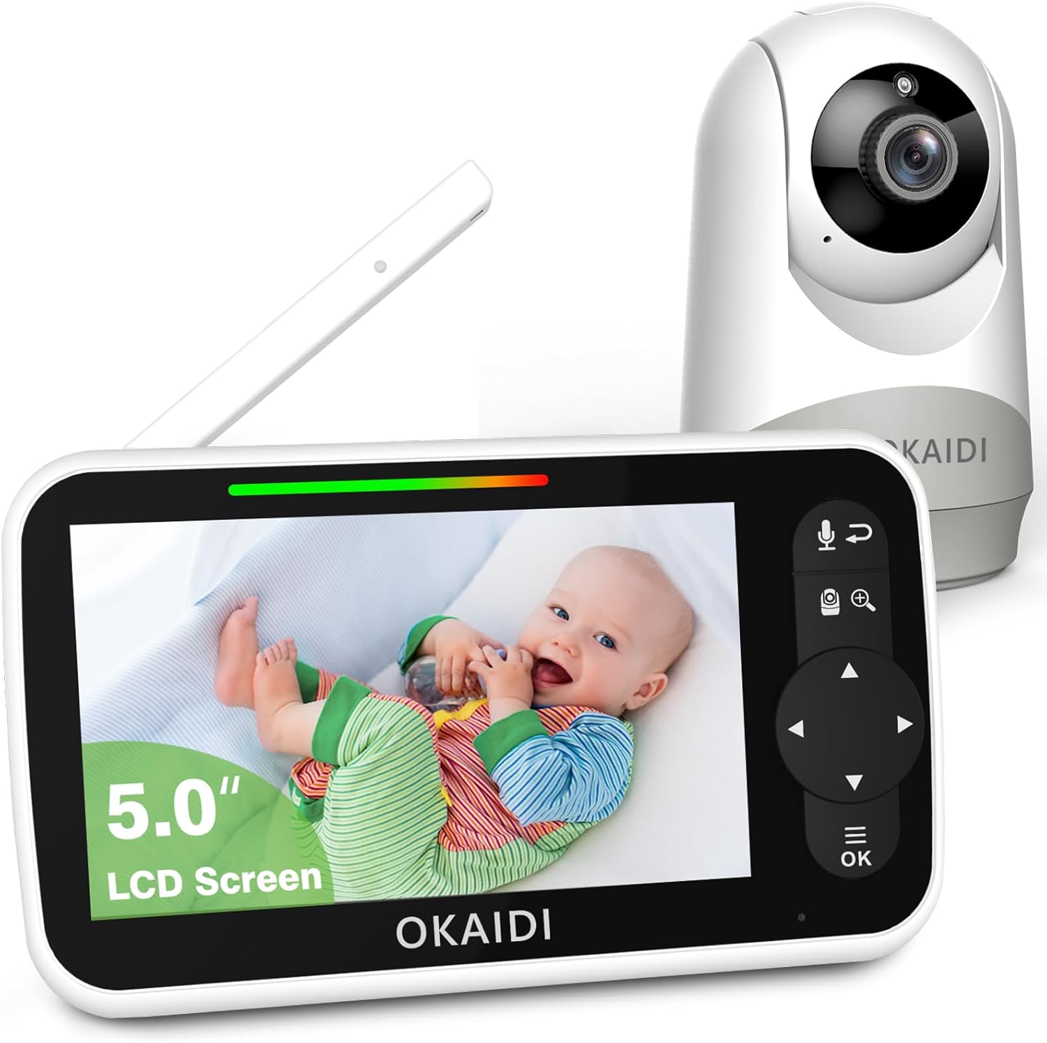 Figure 1: The OKAIDI OD8051 baby monitor, featuring a 5.0-inch LCD screen for viewing and a separate camera unit.
