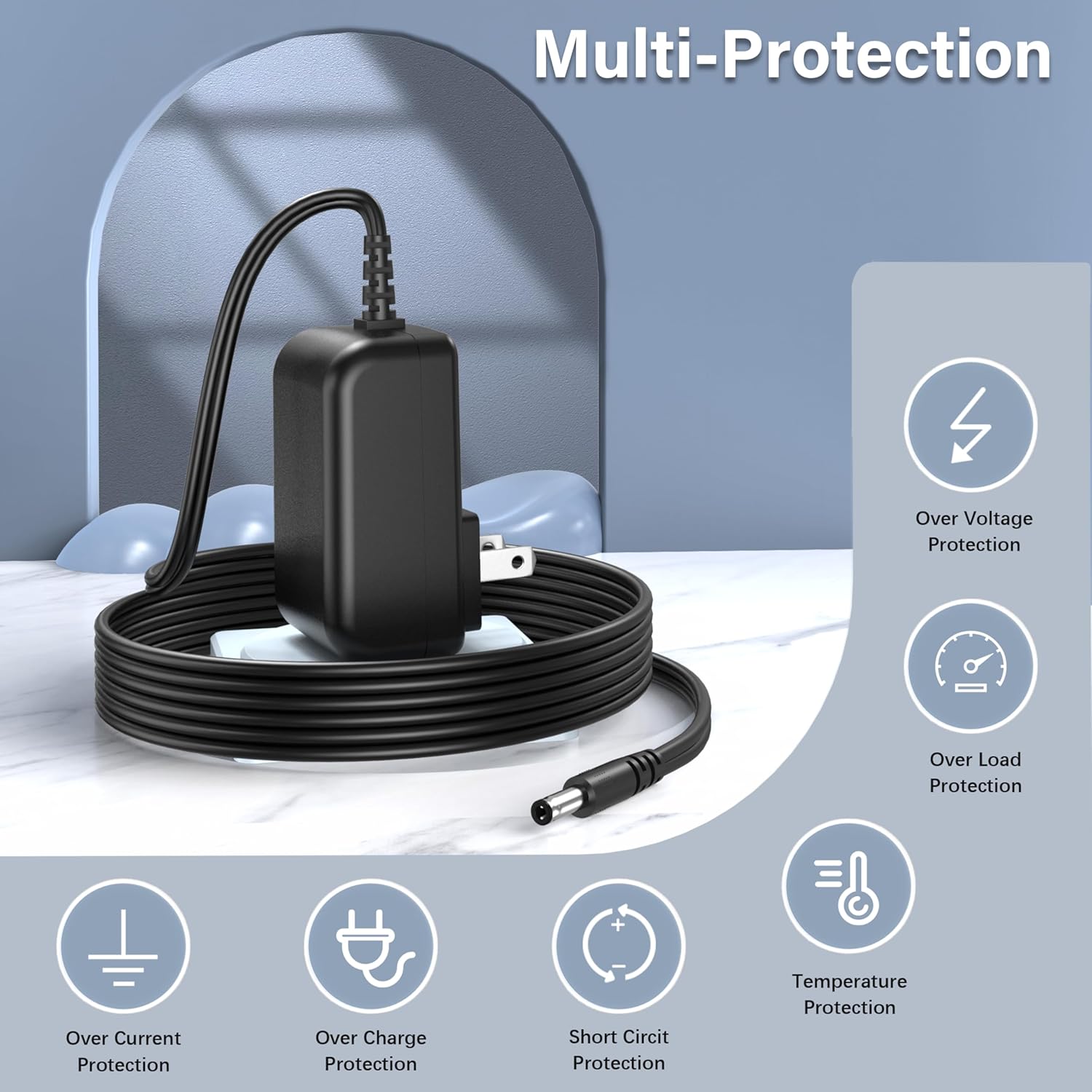 - The adapter features built-in protections against short circuit, over-current, over-voltage, and over-temperature to ensure safe charging.