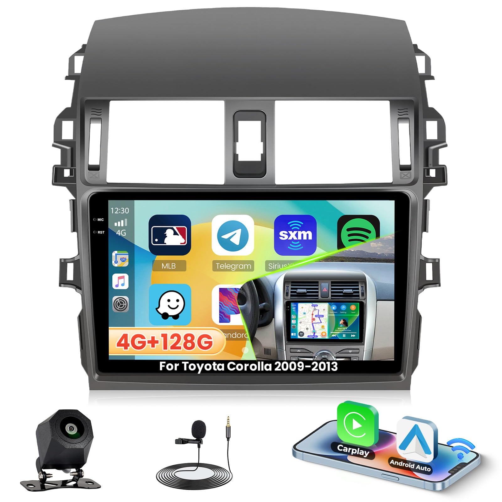 The Roinvou 4+128G 9" Touch Screen Radio is an advanced infotainment system designed specifically for Toyota Corolla models from 2009 to 2013. It features a high-resolution 1280x720 In-Cell touchscreen, offering seamless integration with Wireless CarPlay and Android Auto. This unit provides robust performance with a 4-core processor, 4GB RAM, and 128GB storage, supporting 5GHz WiFi, Bluetooth 5.0, GPS navigation, and includes a backup camera for enhanced safety.