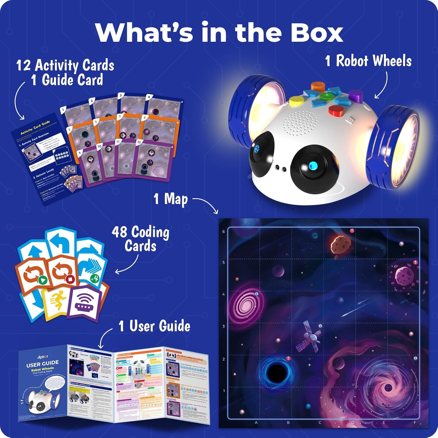 The Apitor Robot Wheels Dual Coding Robot (Model APR011) is an educational STEM toy designed to introduce children aged 5 and up to the fundamentals of coding through interactive play. This robot offers two distinct programming methods: screen-free physical button coding using activity cards and a map, and app-based graphical programming via Bluetooth. This manual provides detailed instructions for setting up, operating, maintaining, and troubleshooting your robot to ensure a rewarding learning experience.
