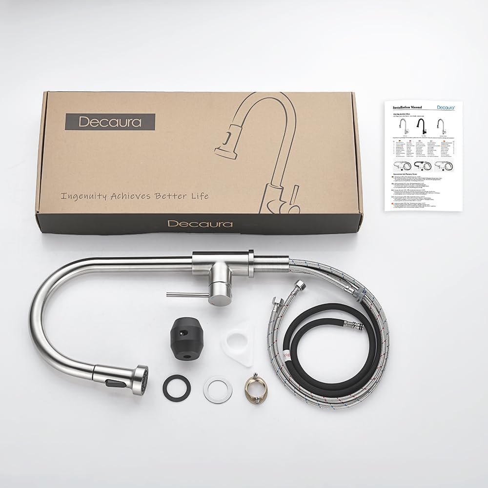 Thank you for choosing the Decaura Kitchen Faucet with Pull-Out Sprayer. This manual provides detailed instructions for the installation, operation, and maintenance of your new kitchen faucet. Please read this manual thoroughly before installation and keep it for future reference to ensure safe and efficient use of the product.