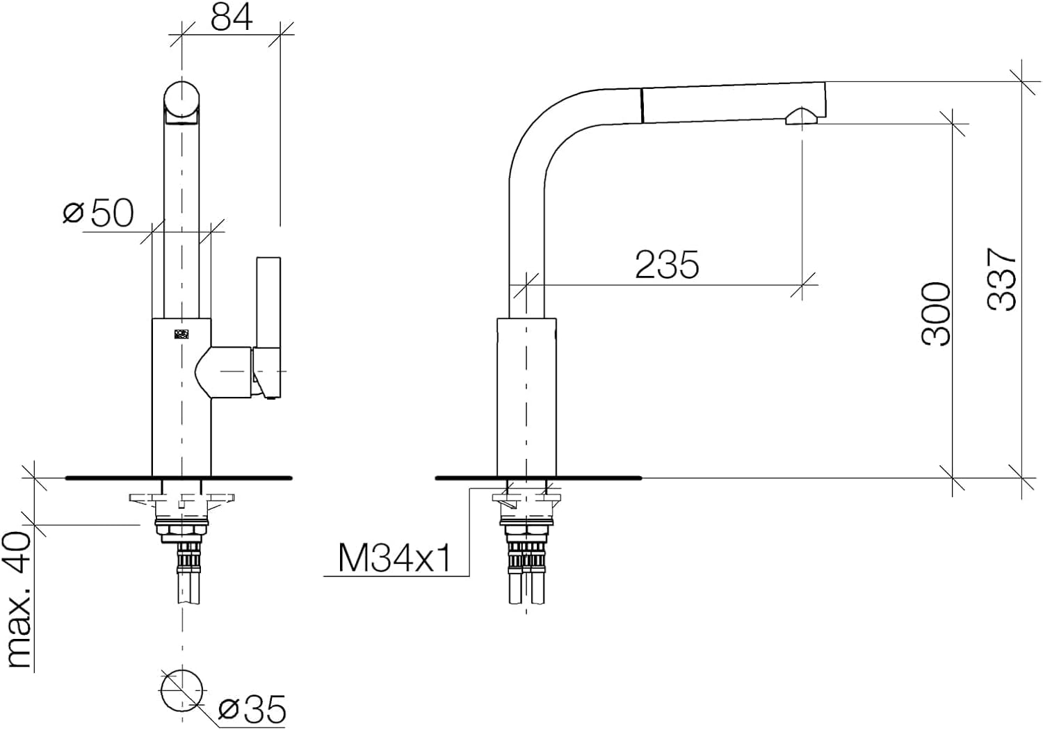 - Prepare the Mounting Surface: Ensure the sink or countertop has a single mounting hole with a diameter of approximately 35mm. The maximum countertop thickness should be 40mm.