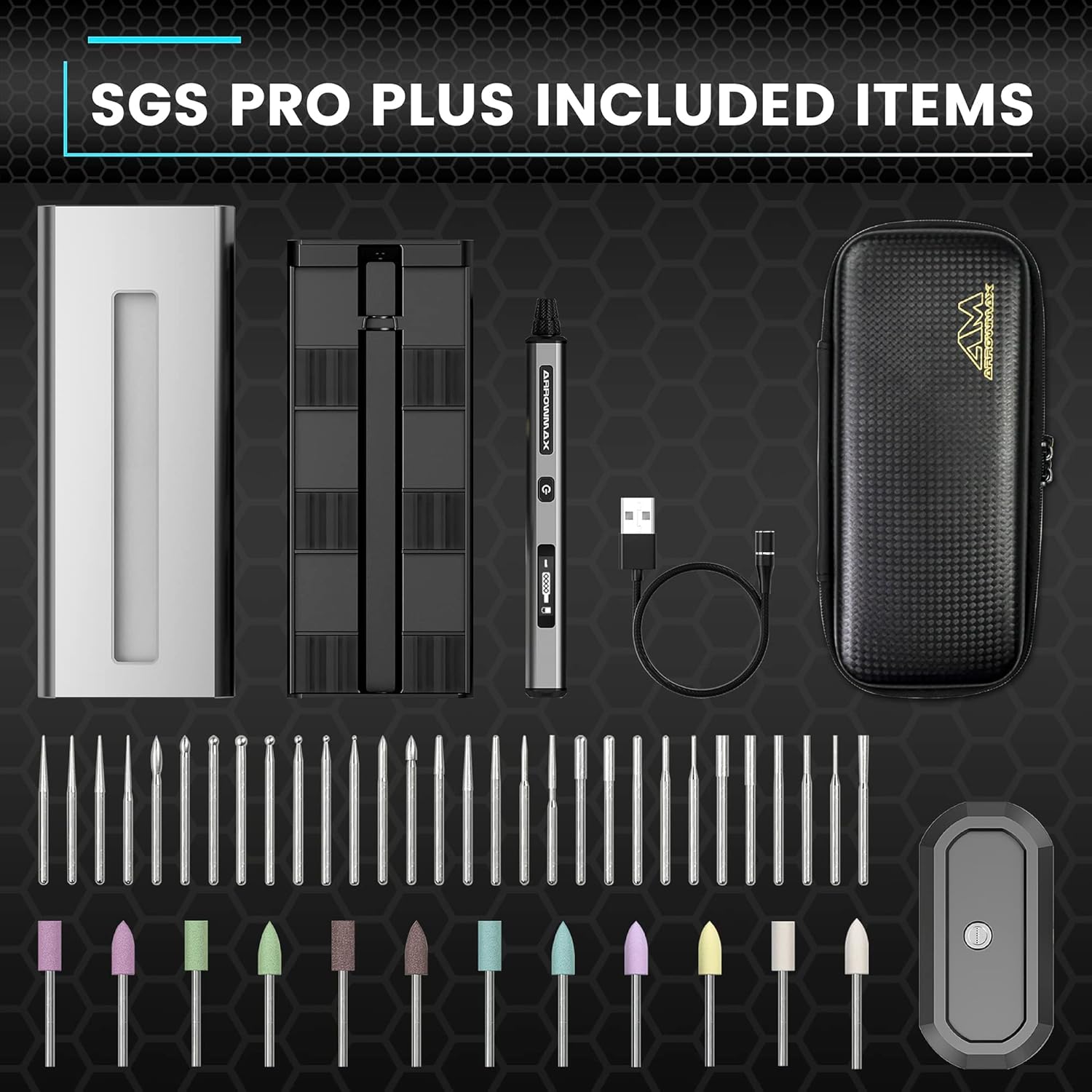 Thank you for choosing the ARROWMAX SGS PRO PLUS Smart Electric Engraving & Polishing Pen. This precision tool is designed for detailed engraving, polishing, and sanding tasks on various materials. This manual provides essential information for safe and effective operation, maintenance, and troubleshooting. Please read it thoroughly before using the device.