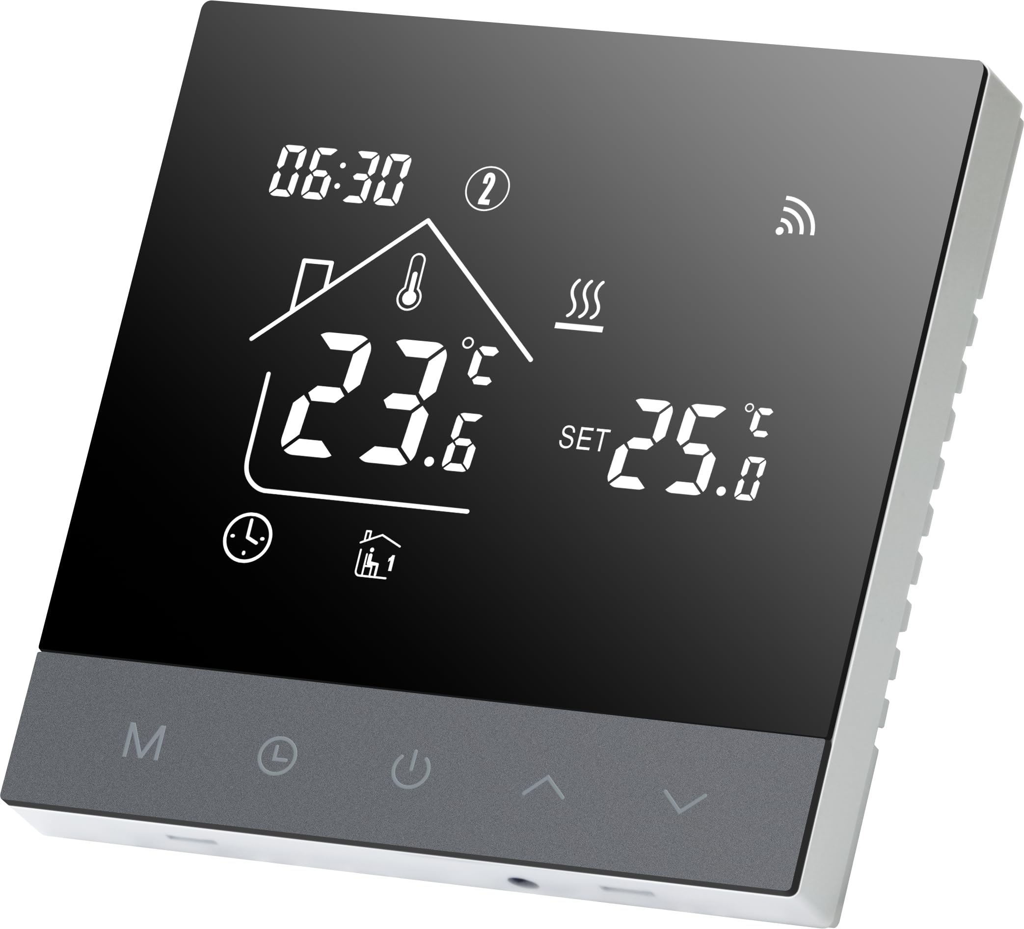 To enable smart control, connect the thermostat to your home Wi-Fi network (2.4 GHz required). Download the 'Tuya' or 'Smart Life' application on your smartphone.