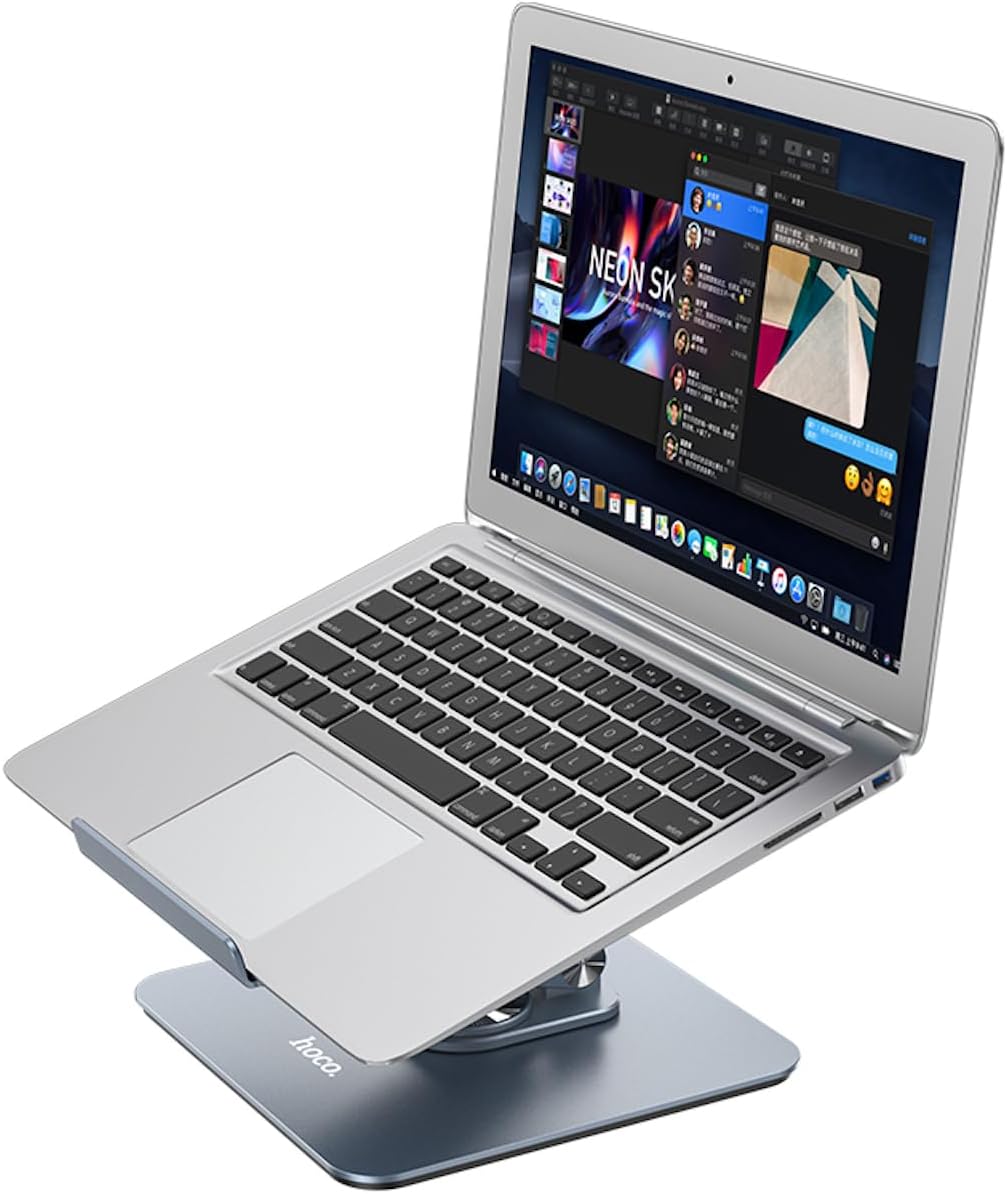 Figure 1: The Hoco PH52 Plus Laptop Holder in use with a laptop, demonstrating its elevated and angled position for improved ergonomics.
