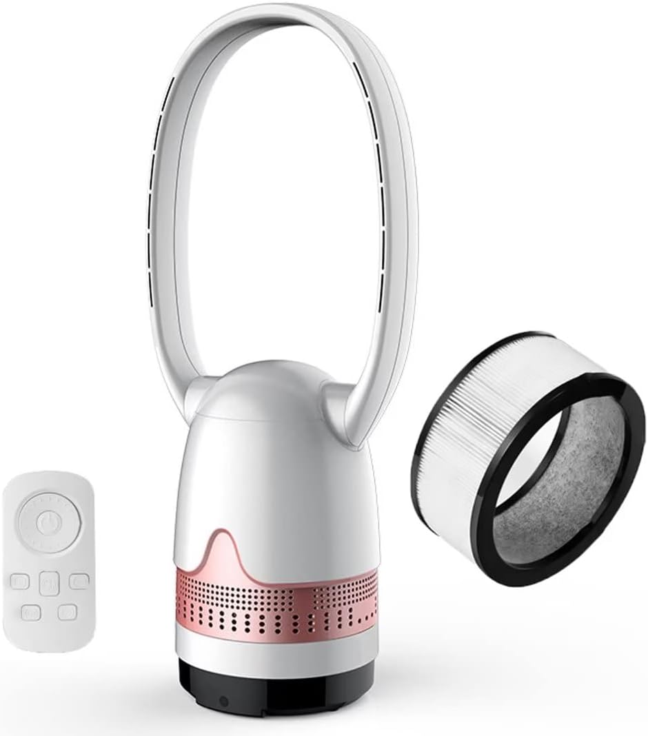 - 2-in-1 Functionality: Combines a bladeless cooling fan with a built-in air purifier filter element for fresh air.