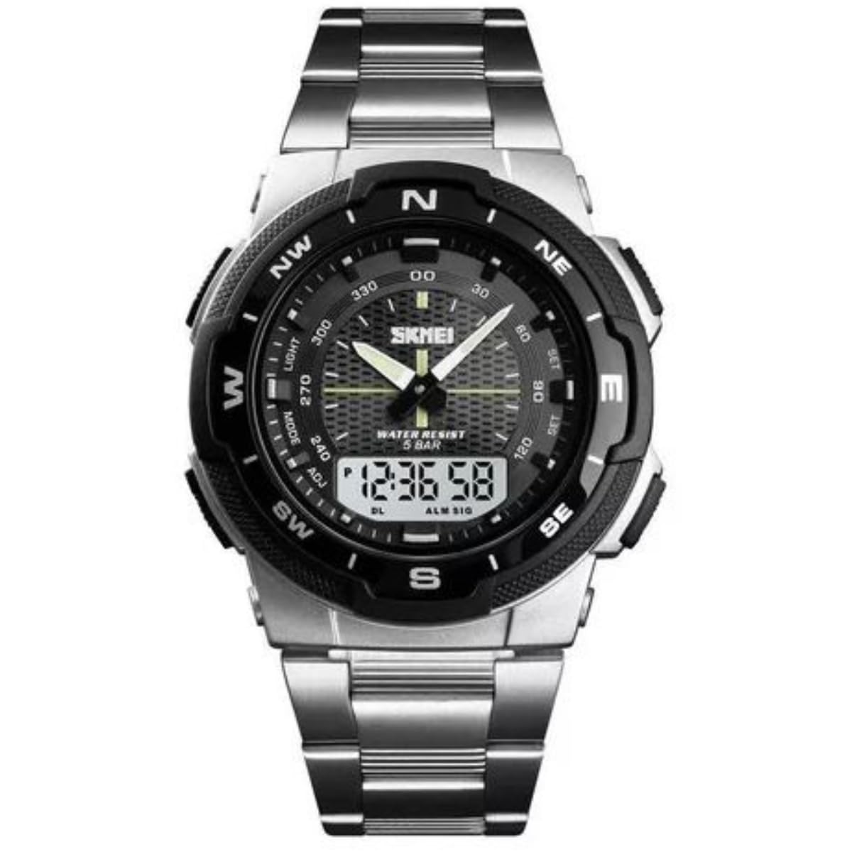 Figure 2.1: Full view of the SKMEI 1370 watch, showcasing its analog and digital display and steel band.