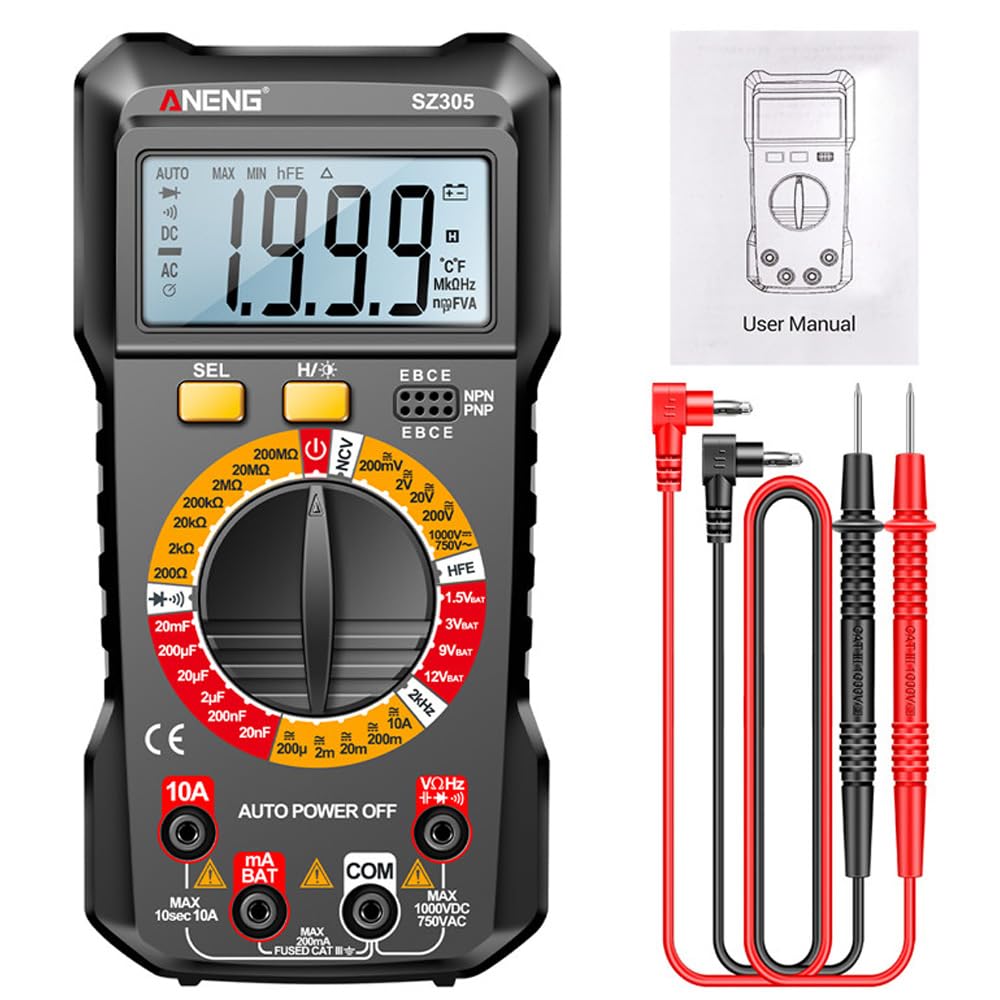 - Accurate Measurements: 1999 count display for precise readings of AC/DC voltage, current, resistance, and capacitance.