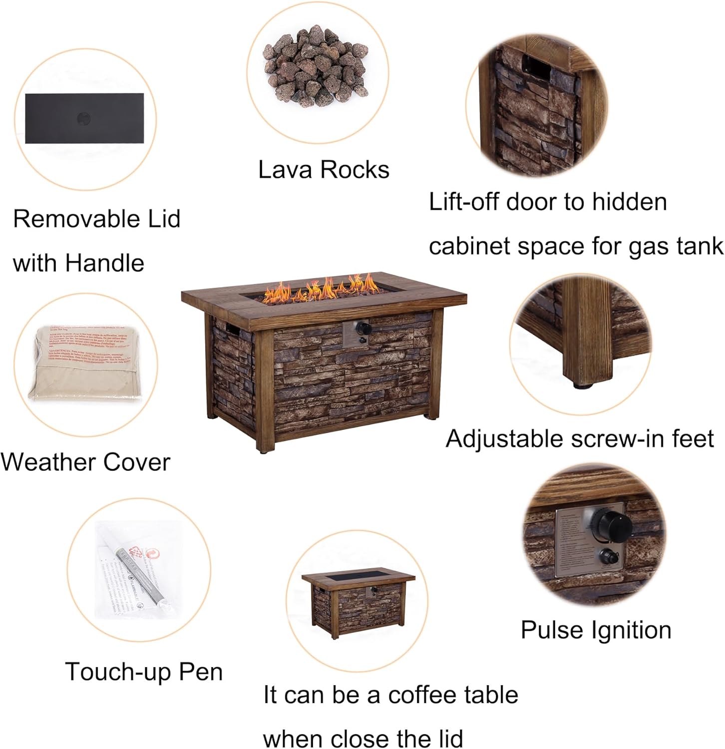 - Adjustable Feet: Adjust the screw-in feet to level the fire pit table on uneven surfaces.