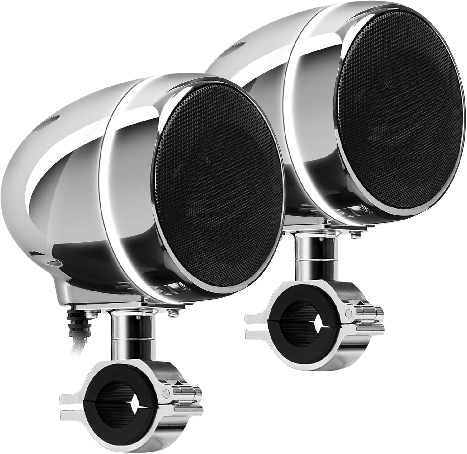 - Mounting the Speakers: Attach the master and slave speakers to your vehicle's handlebars using the provided mounting clamps. Ensure the clamps are securely tightened for stability. The clamps support handlebar sizes from 7/8 inch to 1-1/4 inch.