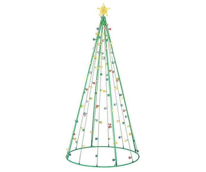 - Drape the light string evenly around the assembled cone frame. Ensure the lights are distributed to achieve the desired multi-colored twinkle effect.