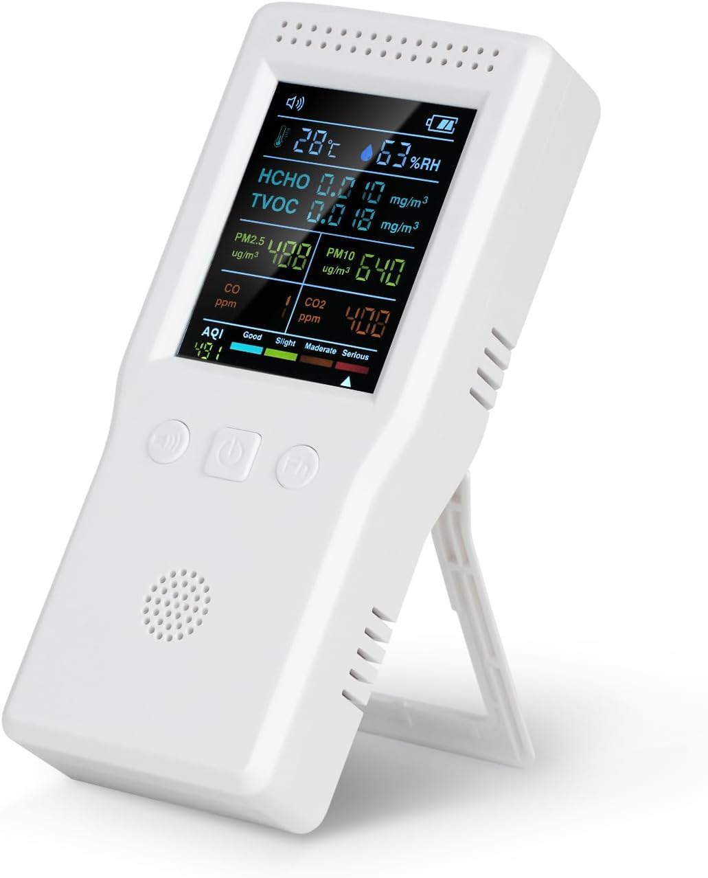 - Clear Screen Display: Easy-to-read screen for quick air quality assessment.