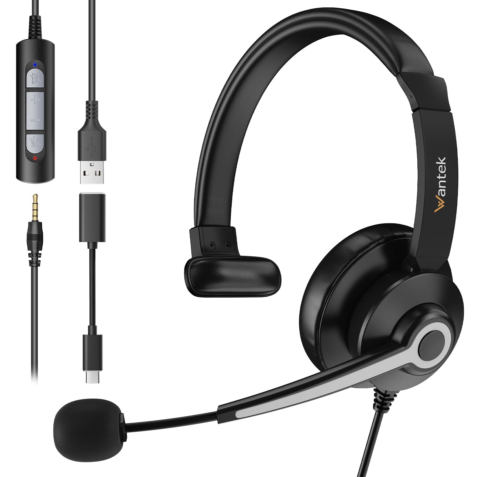 The Wantek 783F Headset is a versatile single-ear headphone designed for clear communication and audio. It features a noise-cancelling microphone and multiple connectivity options for broad compatibility.