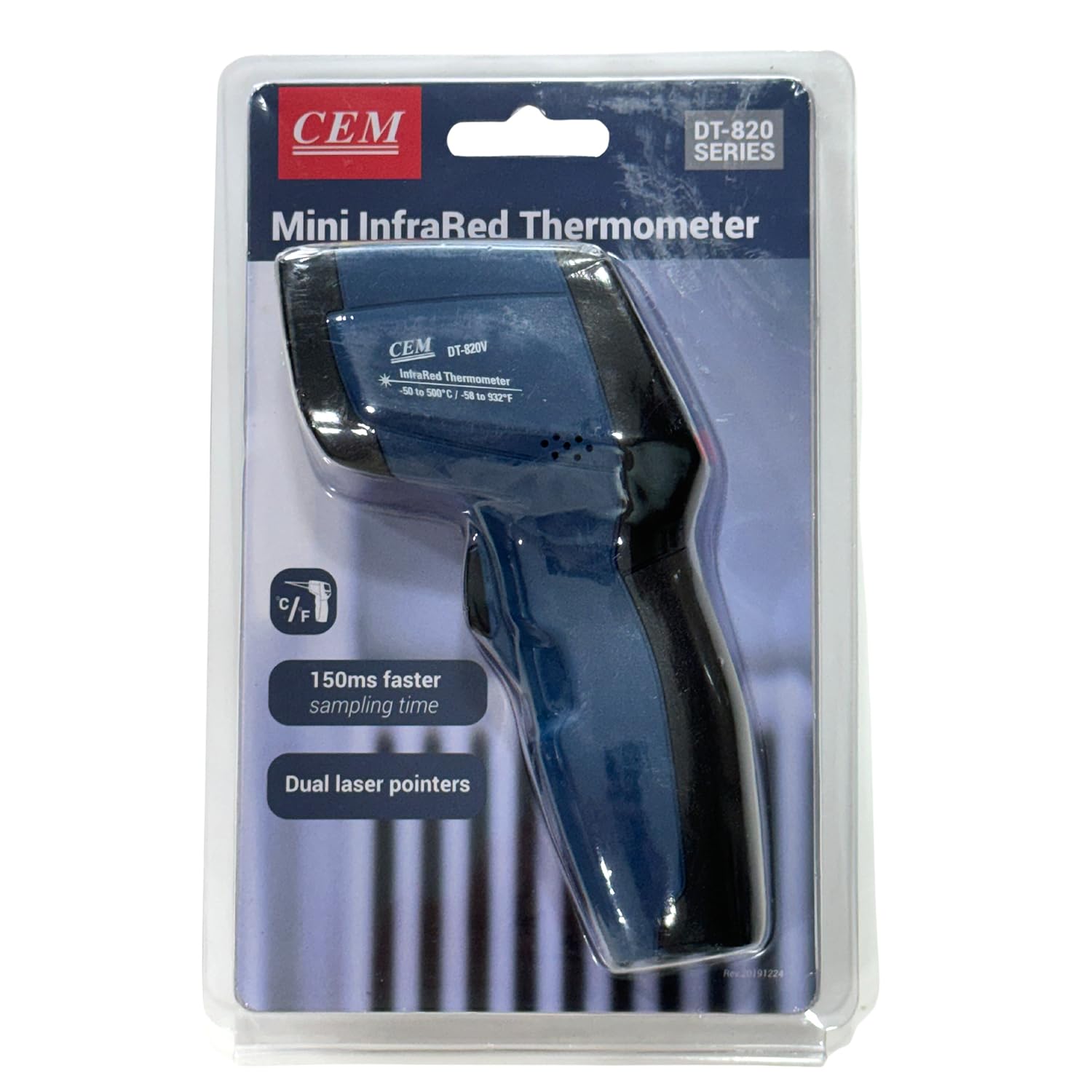 Figure 1: MEXTECH CEM DT820V Infrared Thermometer in its retail packaging.