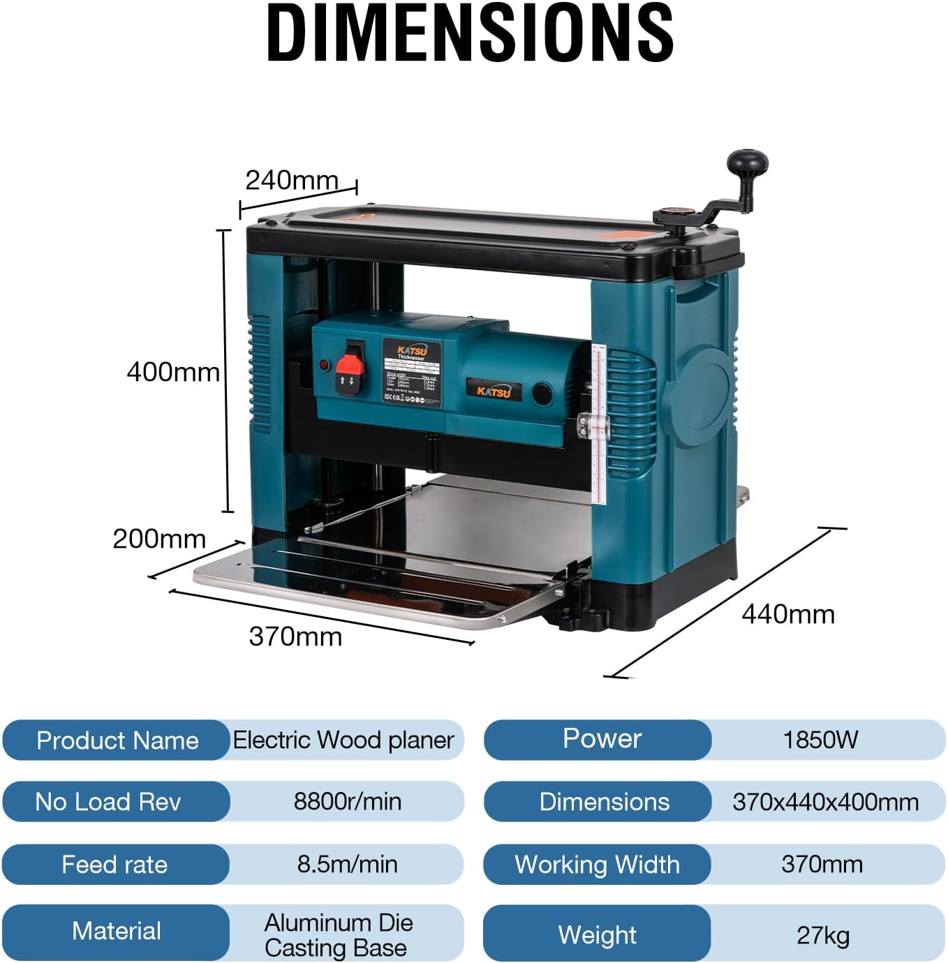 KATSU 1850W Thicknesser 330mm Electric Woodworking Planer