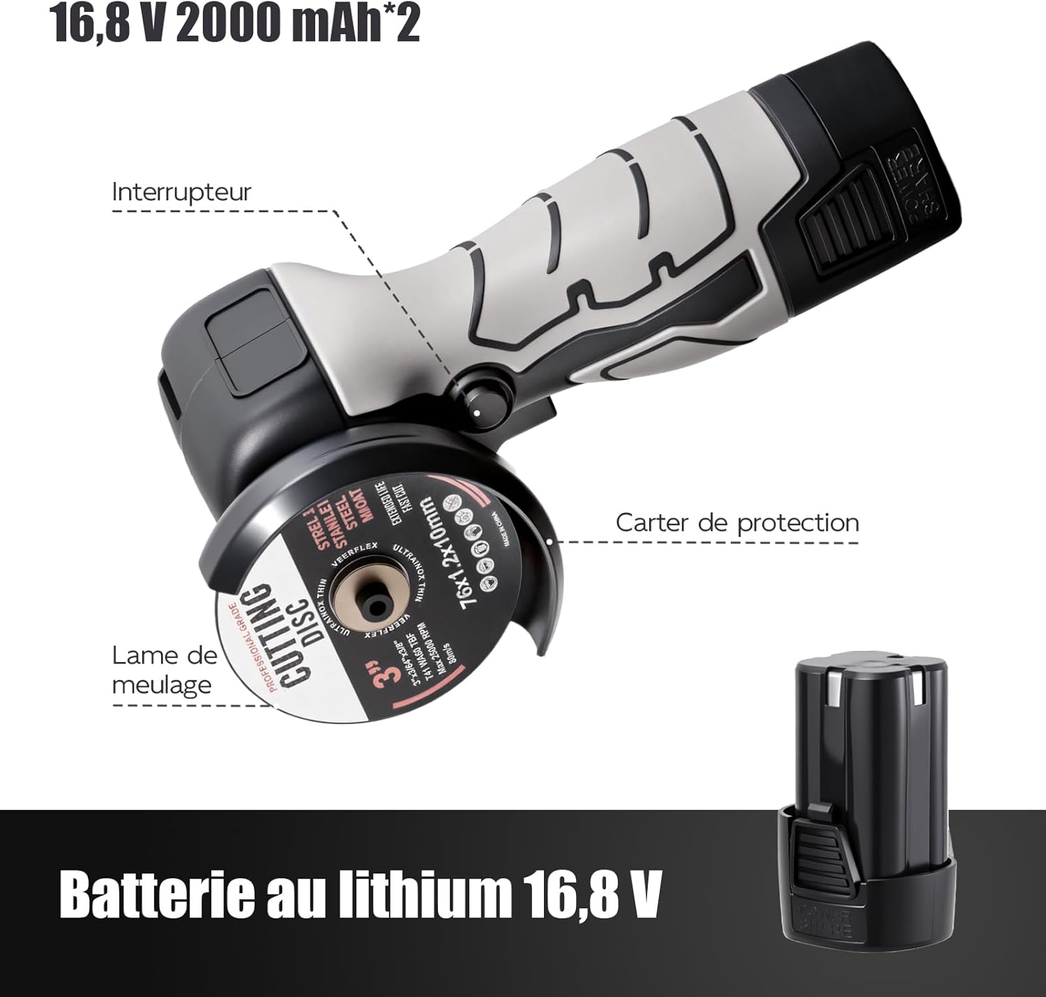- 16.8V Lithium Battery: Provides power to the cordless grinder.