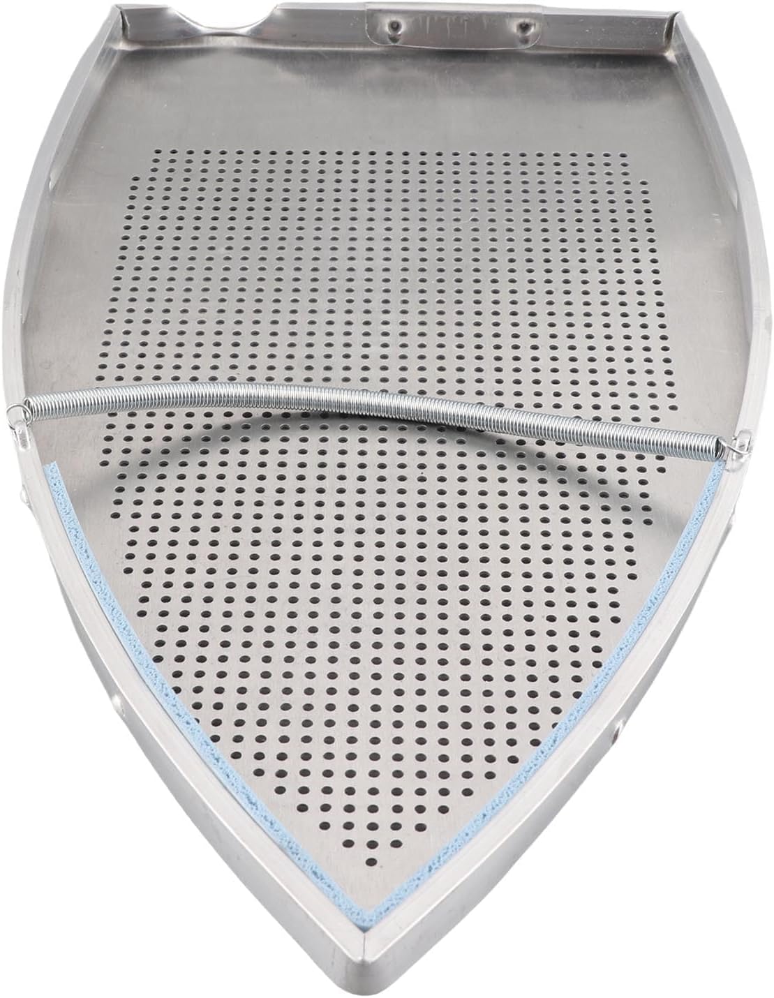 Image 1.1: Top view of the Jwthee Iron Shoe Cover, showcasing its perforated surface and spring mechanism. This cover is designed to protect both fabrics and the iron's soleplate.