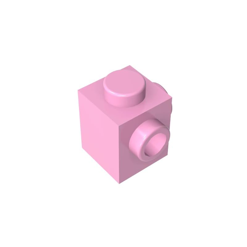 An image showing the Gobricks GDS-1046 Brick Special 1x1 with Studs on 2 Adjacent Sides. The brick is bright pink and features studs on two adjacent sides, allowing for versatile building connections.