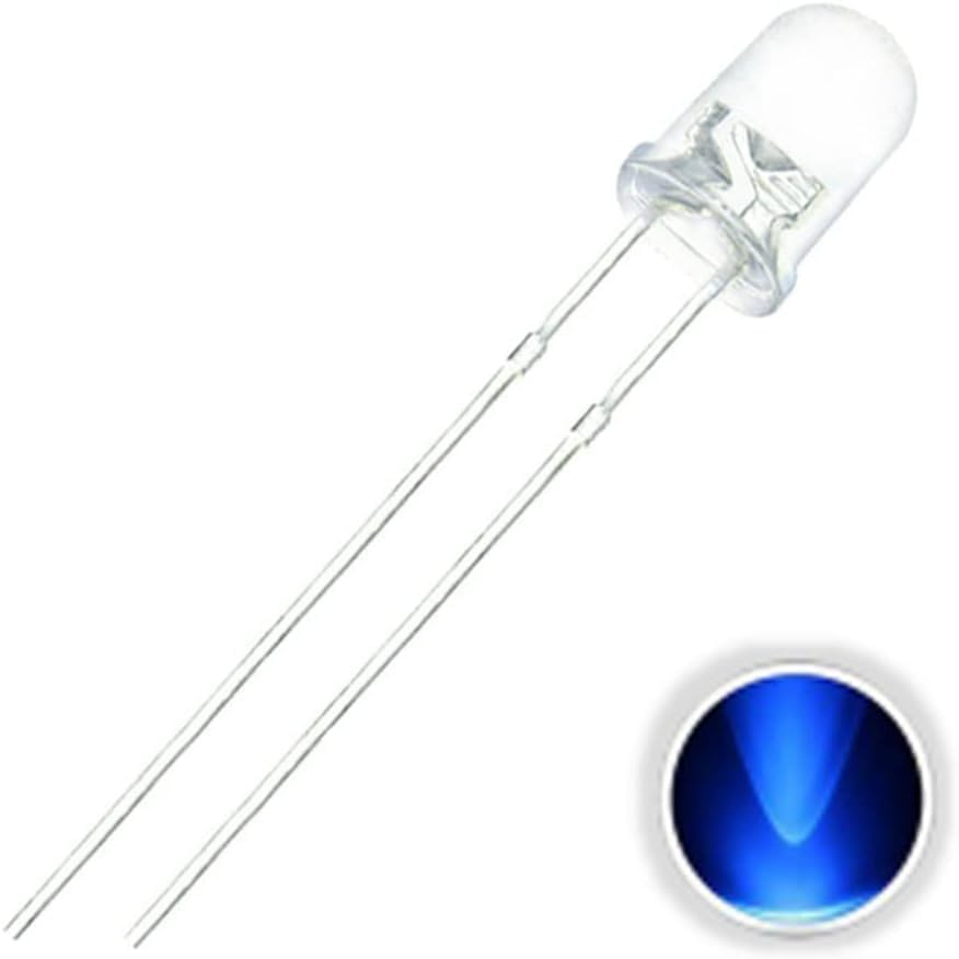 The TOPXCDZ 5mm Blue Flashing LED Diodes are a set of 100 light-emitting diodes that produce a distinct blue flashing light. They are commonly used in DIY electronics, indicator lights, and decorative applications. Each LED features a clear lens and standard leads for easy integration into circuits.