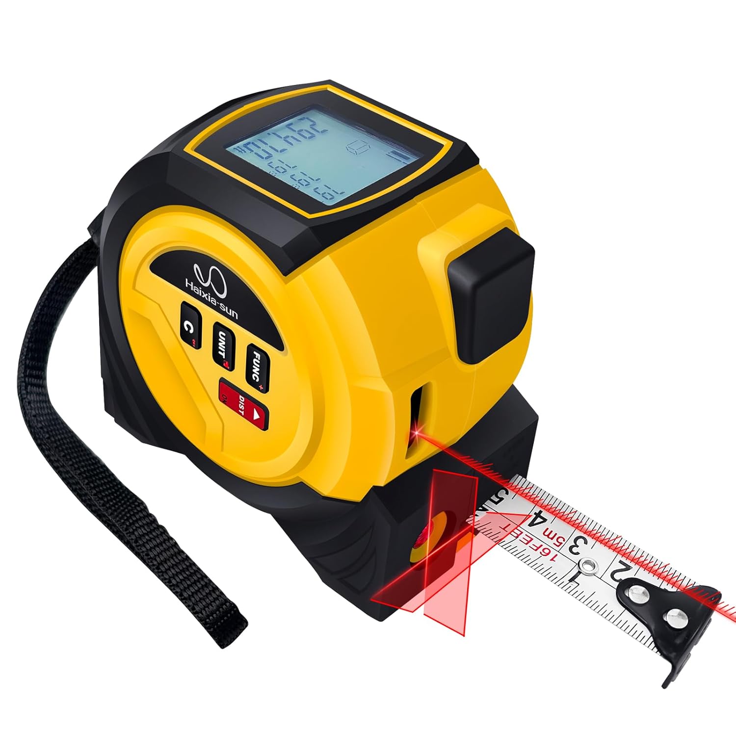 - 4-in-1 Functionality: Combines laser distance measurement, traditional tape measure, cross laser, and area/volume calculation.