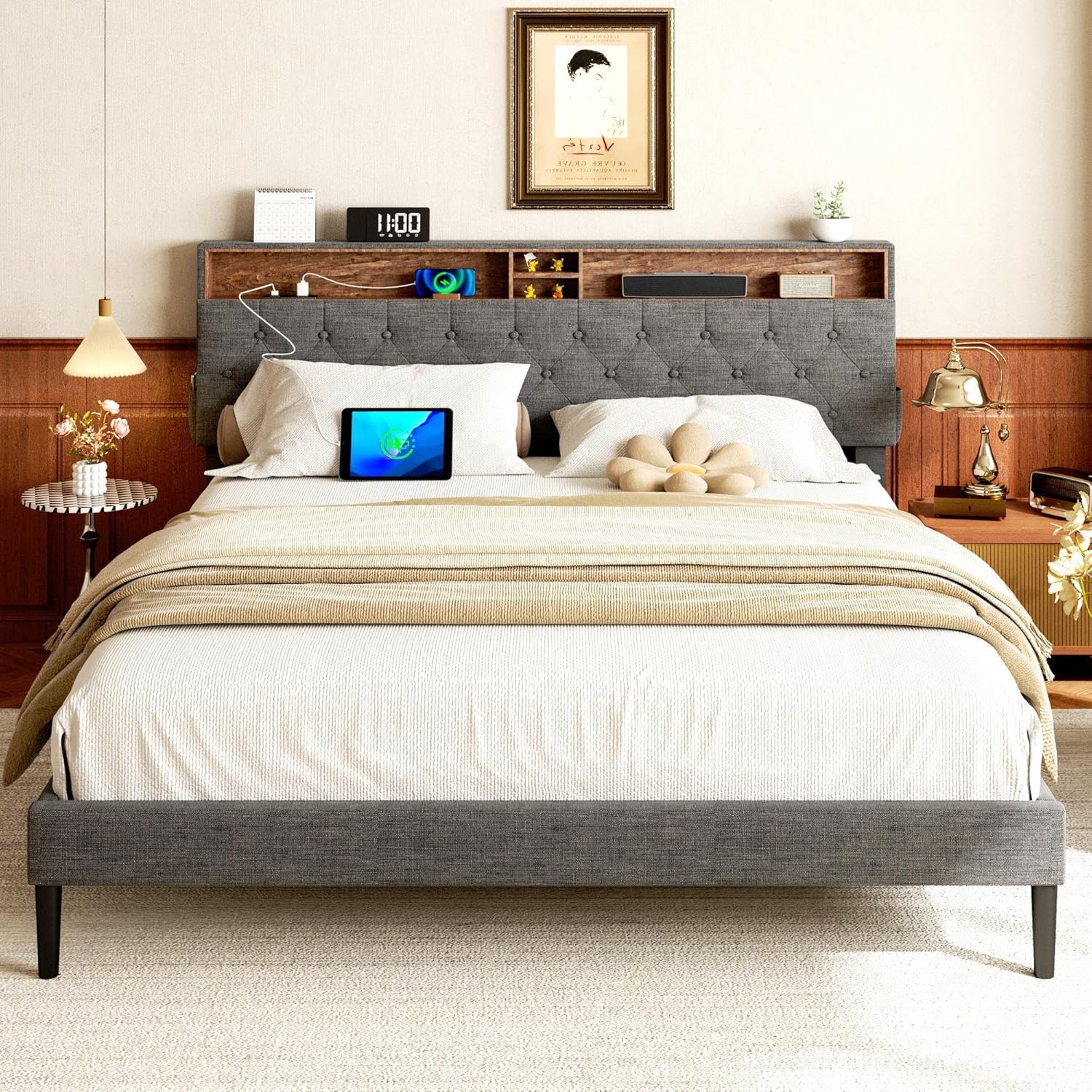 - Storage Headboard with Charging Station: Equipped with two standard plug outlets and USB ports for convenient electronic device charging. Includes a wood storage compartment and two side pockets.