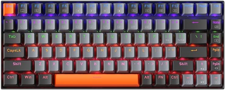 This keyboard features a space-saving 75% layout with 84 keys, providing essential keys while maintaining a compact design. This makes it portable and suitable for various desk setups.