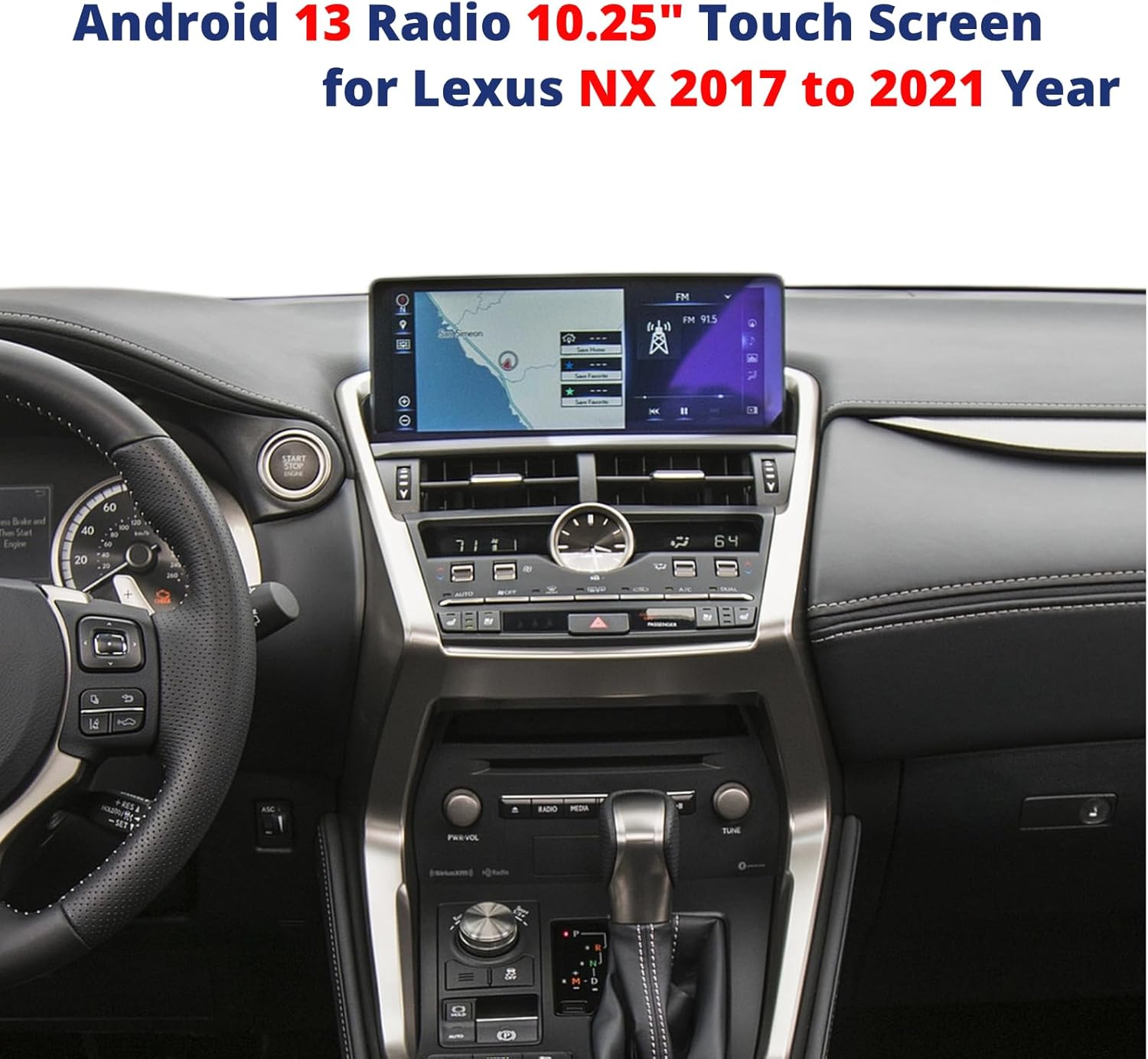 - Android 13 Car Radio for Lexus NX models (2017-2021), upgrading the original car's small, untouchable screen to a 10.25'' touch screen smart radio. Supports original knob and joystick control.