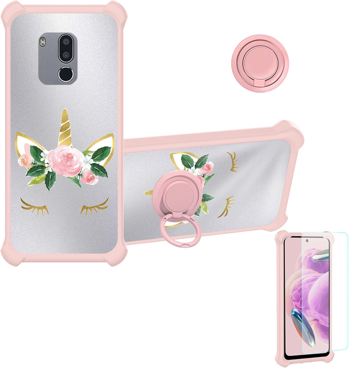 Image: Overview of the phone case, detachable ring stand, and tempered glass screen protector included in the package.