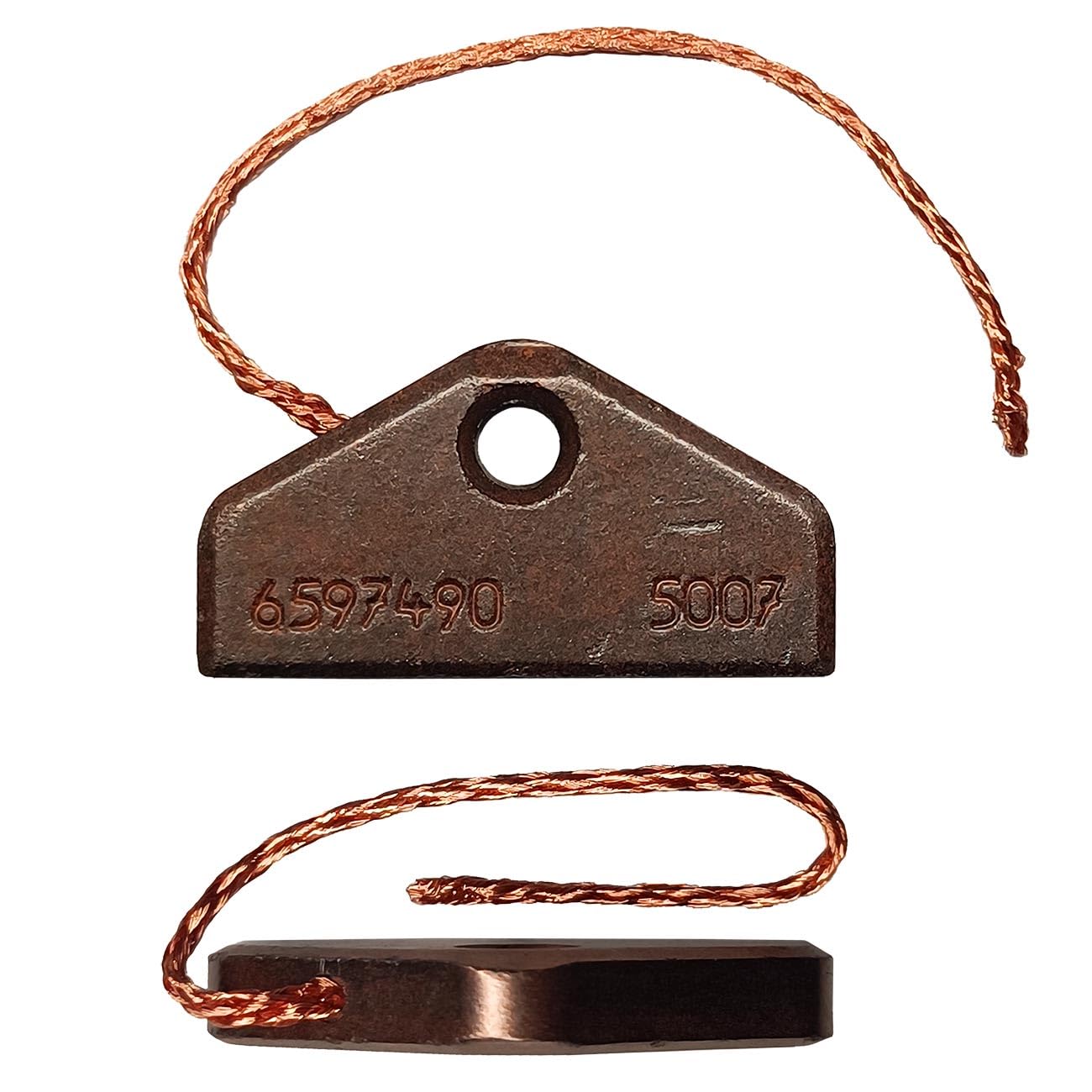Image 1: Tooldaddy Carbon Brushes. This image shows the two carbon brushes with their attached wires and springs, ready for installation.