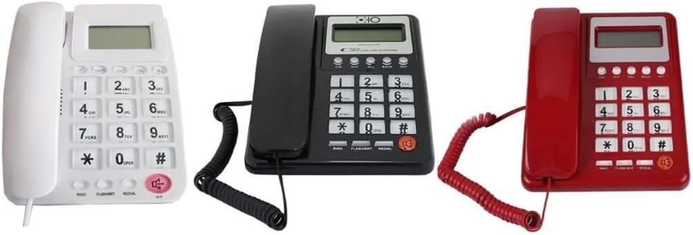 Figure 1: FO-85011 CID Corded Telephones in various colors (white, black, red).