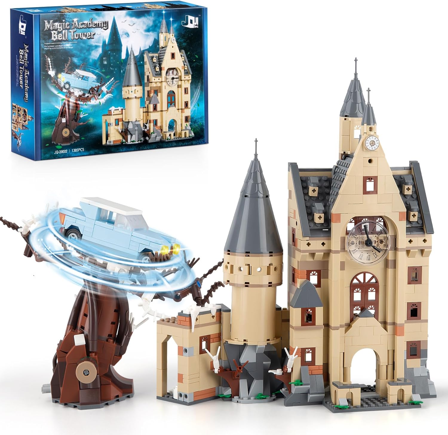 The Magic Clock Tower Building Set includes several interactive elements that enhance its display and play value: