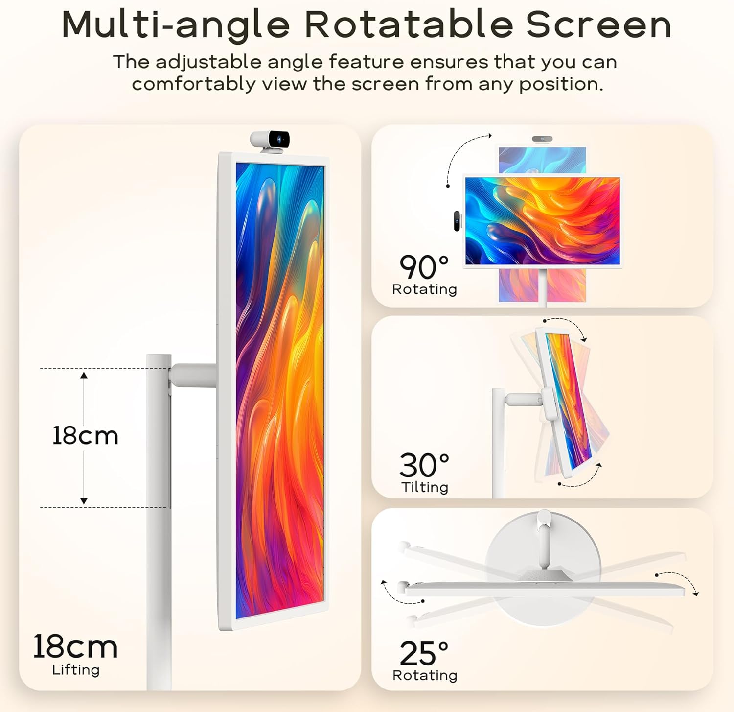 - Adjustable Screen Positions: Effortlessly switch between portrait and landscape modes, and rotate the screen at various angles for optimal viewing comfort.
