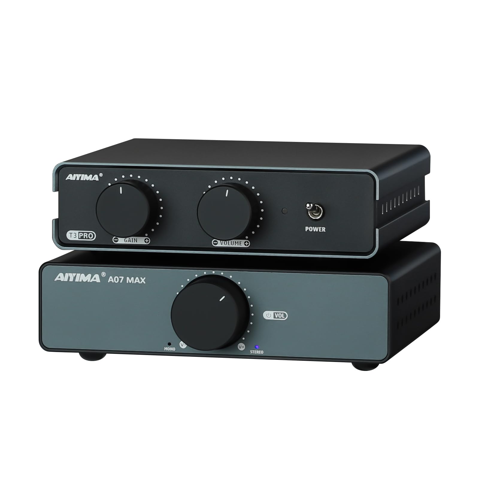 The AIYIMA A07 MAX is a versatile Class D amplifier featuring a TPA3255 chip, capable of operating in stereo or bridged mono mode. The AIYIMA T3 PRO is a professional phono preamplifier designed to support both Moving Magnet (MM) and Moving Coil (MC) cartridges, providing a dedicated input for turntables.