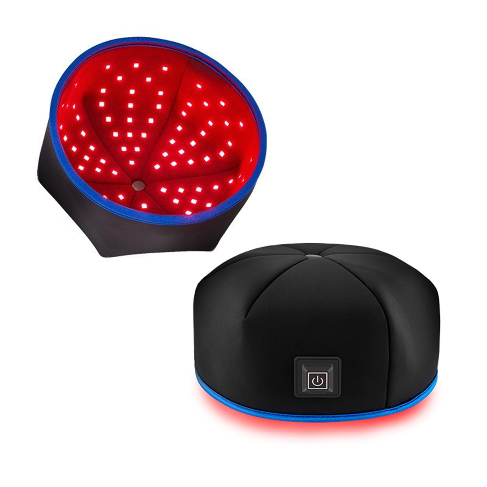 Image 1.1: The ehozirta Red Light Therapy Hair Growth Cap, featuring a power button on the front.