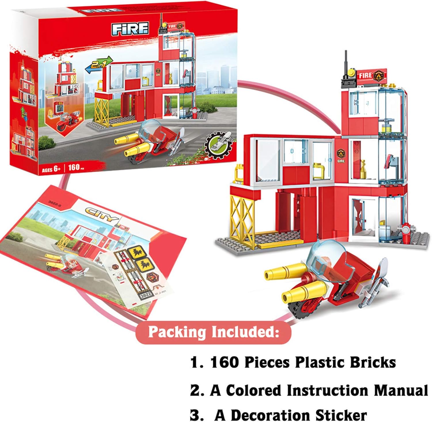 Alternatively, the set can be assembled into a foldable fire station and a fire rescue motorcycle. This design allows for a different play experience and potentially easier storage.