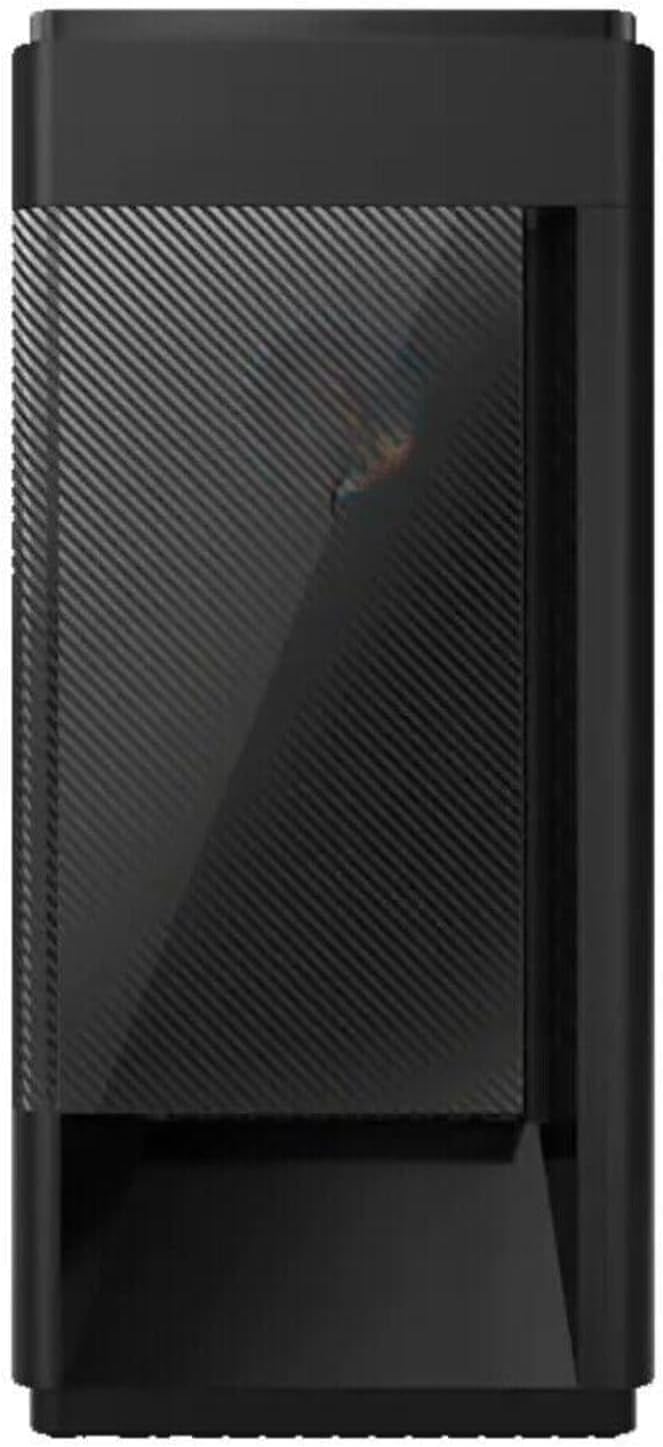 Figure 1.1: Front view of the Lenovo Legion T5 28IMB05 Tower Desktop, showcasing its sleek black design and patterned front panel.
