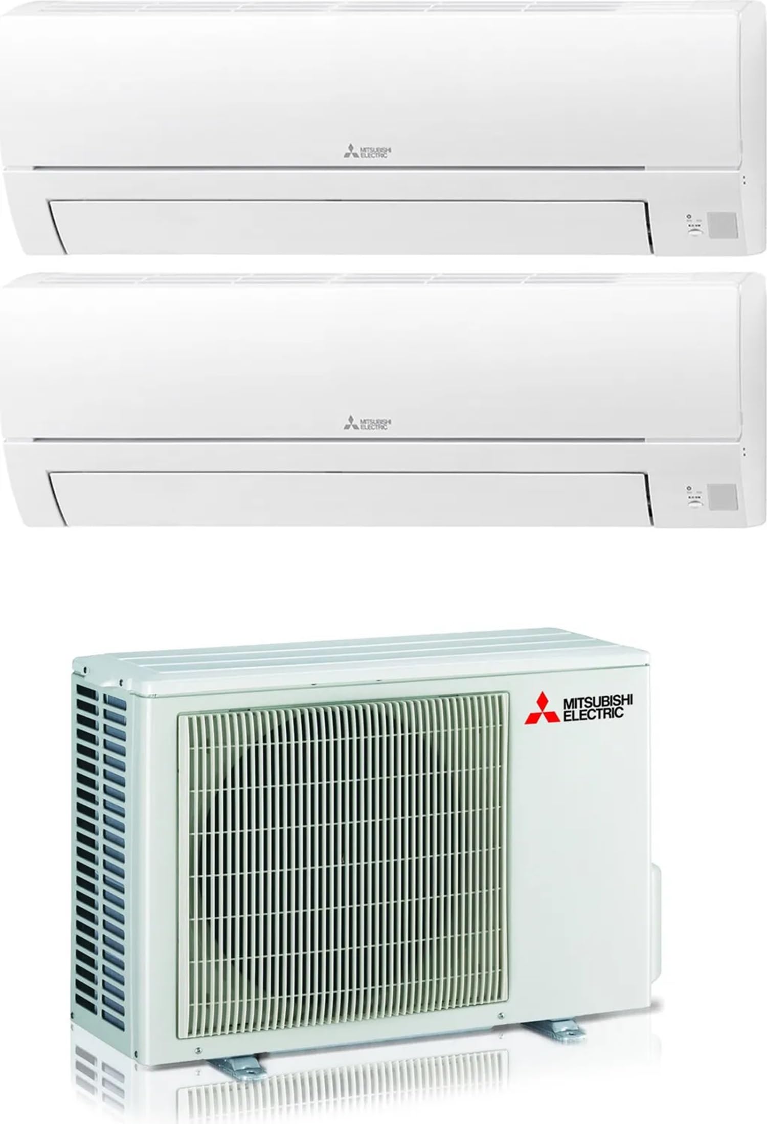 Image 1: Overview of the Mitsubishi Dual Split Air Conditioner System, showing both indoor and outdoor units.