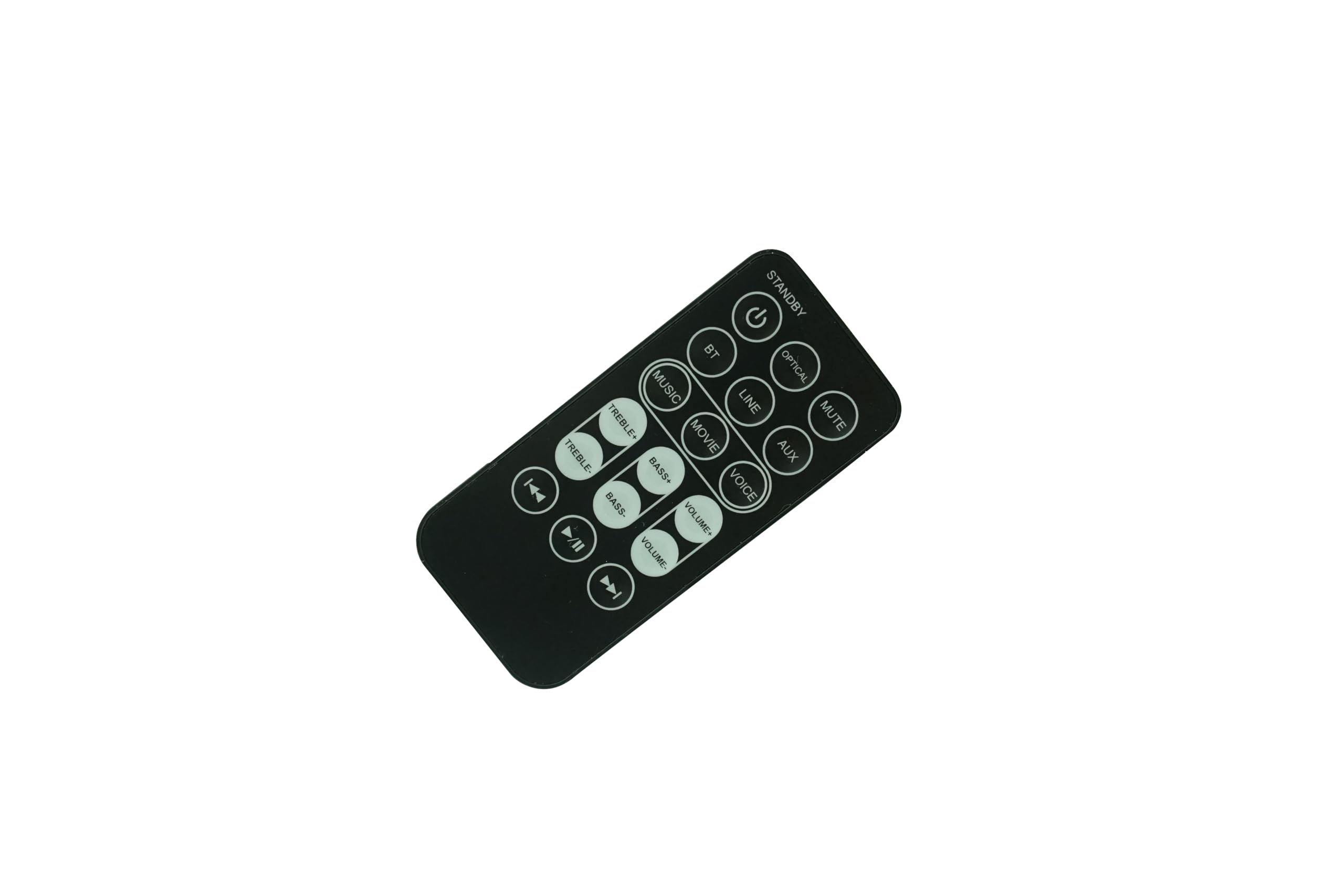 This remote control is designed for intuitive operation. Point the remote directly at your soundbar's IR receiver. Below is a guide to the common buttons and their functions: